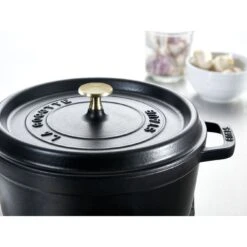 Die Cocotte von STAUB im anmutigen Rotton vereint traditionelle Handwerkskunst mit moderner Funktionalität für einen einmaligen Genuss. Gefüllte Paprikaschoten, klassische Kohlrouladen, mediterranes Ratatouille, süße Desserts sowie frisches Brot und mehr – in diesem praktischen Gusseisentopf können die verschiedensten Gerichte zubereitet werden. Da das besondere Material nur wenig Fett zum Braten bedarf und der Schmortopf zugleich eine einzigartige Struktur aufweist, können die köstlichen Speisen kalorienarm gekocht werden und überzeugen mit ihren vollen Aromen und Nährstoffen. Durch die mattschwarze Emaille wird der Geschmack der Gerichte intensiviert, während das Gusseisen für eine optimale Hitzeverteilung sorgt. Sowohl Profi- als auch Hobbyköche finden in dem energiesparenden Iron Cast Topf einen langlebigen Helfer.