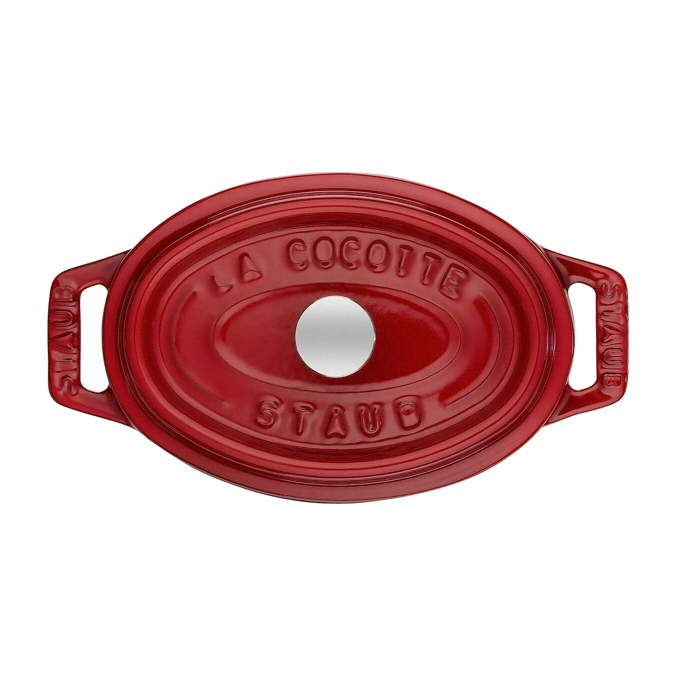 Die ovale Mini Cocotte von Staub besticht durch ihre kirschrote Farbe. Sie besteht aus hochwertigen Materialien und erleichtert Ihnen dadurch die Zubereitung vieler leckerer Schmorgerichte, wie beispielsweise Rinderrouladen. Die Cocottes von Staub bestehen aus emailliertem Gusseisen, das Hitze lange speichert und sie langsam und kontinuierlich wieder abgibt. Auf diese Weise werden Fleisch und andere Zutaten schonend gegart, bewahren ihre wertvollen Inhaltsstoffe und entwickeln ihr volles Aroma. Die guten Eigenschaften des Gusseisens werden durch eine Emaillierung auf der Innenseite noch verstärkt. Sie ist mattschwarz und bildet dadurch einen optisch ansprechenden Kontrast zur kirschroten Außenseite. Die ovale Mini Cocotte in Kirschrot hat einen Durchmesser von 11 cm und mit Deckel eine Höhe von 7cm. Solch ein Schmortopf eignet sich durch sein Fassungsvermögen von 0,25 l vor allem für Einzelportionen, die sie direkt darin servieren können. Bei einer Cocotte spielt es keine Rolle, welche Art von Herd Sie besitzen. Denn solch einen Schmortopf können Sie auf einem Gas- oder Elektroherd und selbst auf einem Induktionskochfeld benutzen. Außerdem gelingen Ihnen im Backofen mit der Mini-Cocotte von Staub die leckersten süßen oder herzhaften Gerichte.